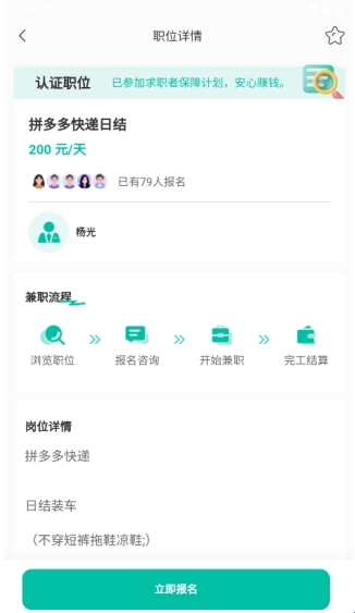 进入到职位详情后可以了解具体的职位信息,可以随时进行报名;