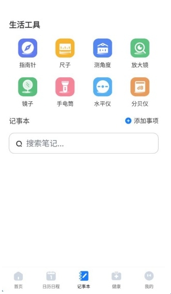 在记事本页面,支持更多事项添加功能,还有指南针、尺子、放大镜等免费且实用的工具,都是直接开启使用,操作很丝滑。