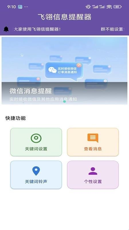 飞翎信息提醒器app是一款非常好用的信息提醒工具软件,这款软件可以帮助用户接收各种最新信息并进行提醒,避免用户遗漏重要的消息,为用户提供了一个优质的消息通知平台。此外,用户可以根据自己的喜好自定义来电铃声提醒,为用户带来更好的体验感,软件的功能丰富,内容多样,感兴趣的朋友们快来下载体验吧。