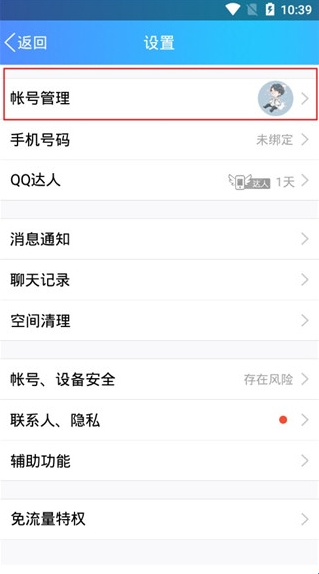首先到本下载手机qq2017老版本,登录后进入首页,点击头像