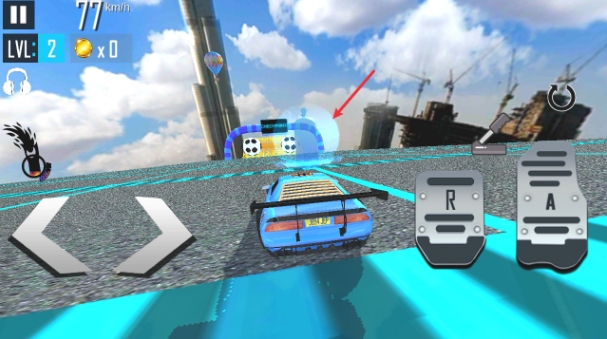 2、正式开始后,点击右侧的长踏板即可启动前进,左侧控制方向。