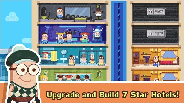 酒店大亨是一款经营酒店的游戏。玩家在游戏将扮演酒店的经营者,想方设法的给自己的酒店增加曝光和营业额,通过升级房间、扩张酒店、员工培训等多种手段来提升顾客的好感度。游戏玩法简单,只需要点击屏幕即可,新手小白也能快速上手!