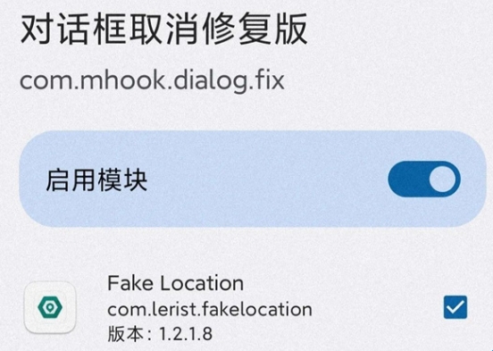 第一步,在xposed框架内激活对话框模块并且勾选作用域