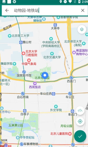 3、在地图中搜寻想要模拟的位置后点击右下角勾号按钮;