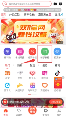 2、点击开启省赚之旅按钮,跳转至应用主界面。