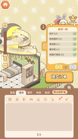 5、当放置完所有家具后就可以点击提交订单来获得奖励。