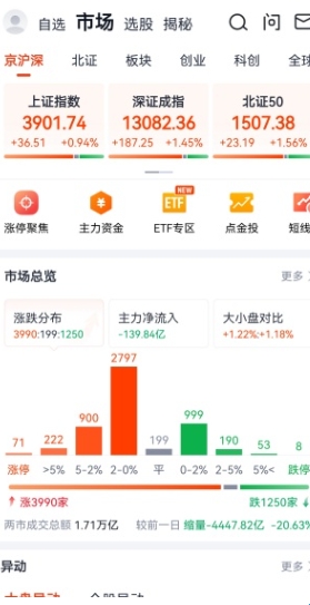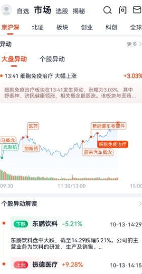 2、提供最新的大盘异动情况,还有个股异动,方便做出决策。