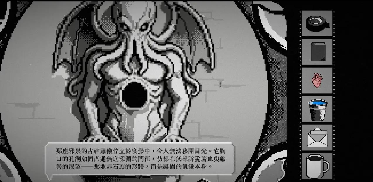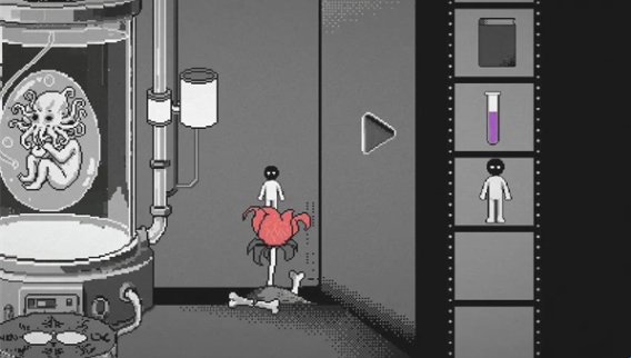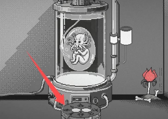 10、然后回到培养皿所在房间,点击培养皿前面的祭坛。左侧放上老鼠心脏,右侧放上人偶,唤醒克苏鲁幼崽。然后将毒药对准喂食口使用,之后培养皿玻璃破碎,游戏结束。