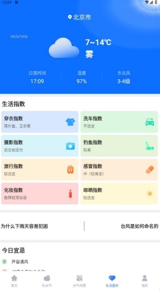 在生活服务页面,则支持穿衣、防晒等生活指南信息分享。