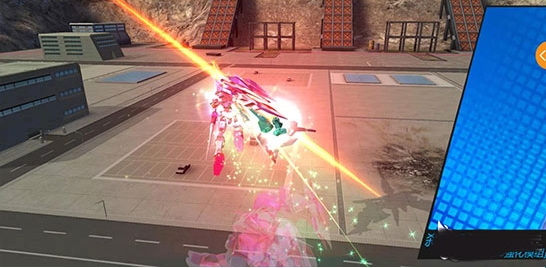 射线型的觉醒必杀无论是否接触到对手,都会完成全部攻击动作,自然在动作硬直上会比乱舞型要多一些;射线攻击一旦释放,射程内全部物体都会被贯穿,哪怕是在移动时碰撞到射线都会被计算扣除一定的血量,在多人对战以及BOSS战中极具优势,并且忠实还原了高达原作中的设定细节。