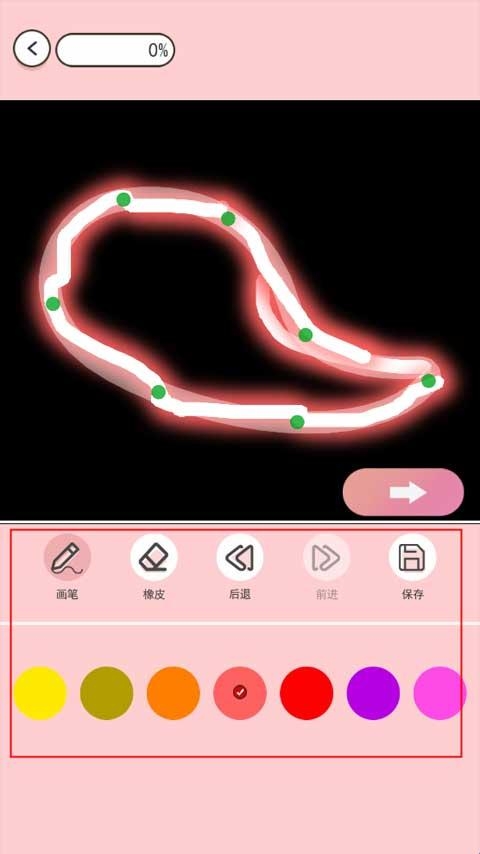2、选择好想要画的内容后,根据系统画笔绘制的线条一步一步的进行描摹。这是一个非常简单有趣的操作。拿起画笔,描绘自己的幻想世界。