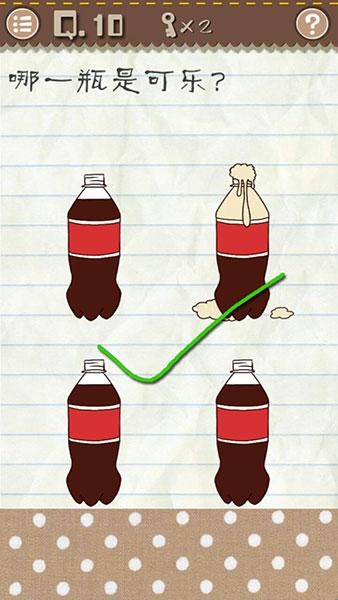 第10关、摇动游戏设备,可乐是会冒泡的,所以冒泡的就是目标了。