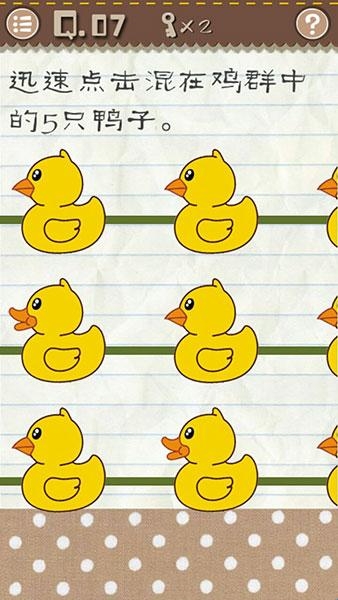 第7关、看到鸭嘴的就是鸭子了,记住只要点击五只,多点击或是少点击都失败。