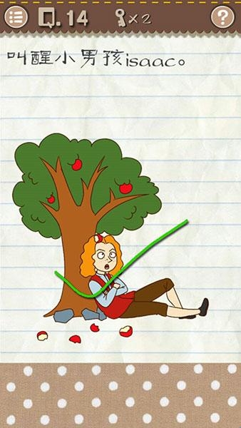 第14关、摇动手机,让苹果掉下来砸醒牛顿,过关。