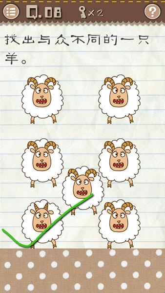第4关、晃动手机,然后会有一只羊晕倒,就是它。