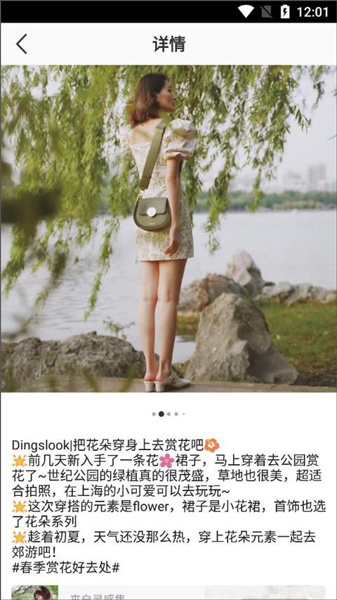 3、打开穿搭分享内容,用户可查看文案、灵感集内容、穿搭照片等。