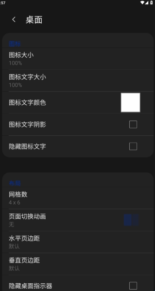 4、还可以更改桌面图标大小,选择文字颜色和文字阴影。
