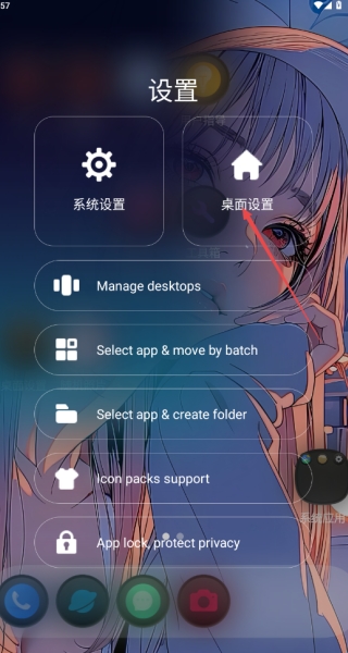 2、在桌面点击桌面设置按钮,可以跳转到桌面设置界面;