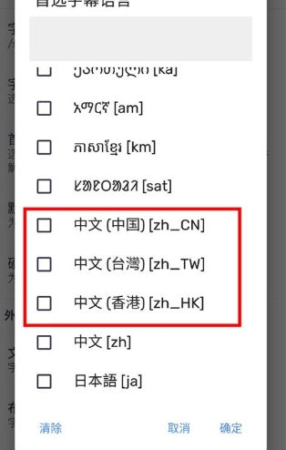 5、然后滑动手机屏幕,点击勾选中文,然后点击下方的确定按钮