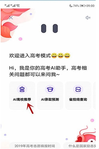 然后点击页面上的“Al高校推荐”选项;