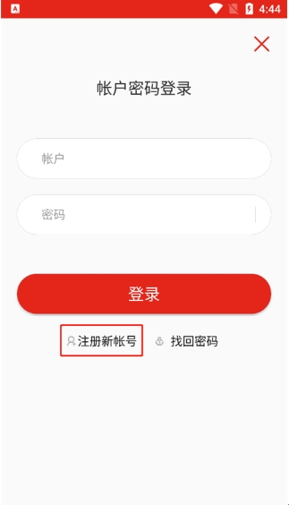 已注册过的用户可以点击登录,输入账户、密码进行登录;没有注册过的用户可以点击注册新账号进行新用户注册;