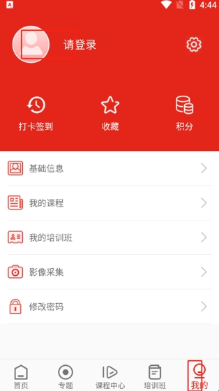 登陆完成后点击培训班,如信息未完善页面会提示“请用户完善个人基本信息和头像采集”的字样点击确定;