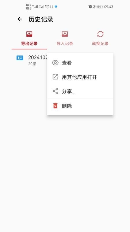 还可将生成的表格和通讯录名片来实时导出,快捷导出分享,选择导出数据来进行一键导出。