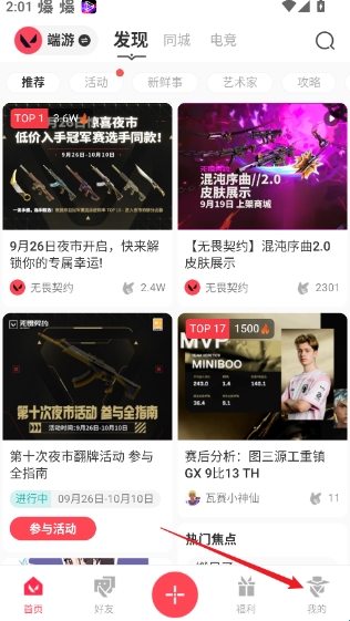 进入瓦罗兰特助手App后,先点击右下角的“我的”页面;