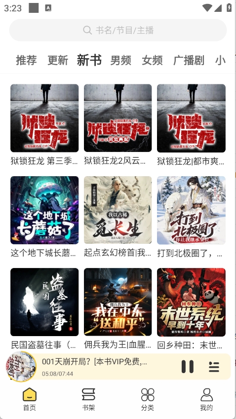 2、首页为用户提供了众多的听书资源,有男频、女频以及广播剧等。