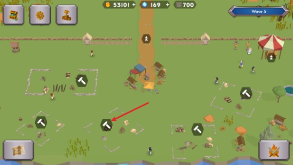 1、进入游戏后就能够看到带有建造图标的土地,点击即可开始建造。