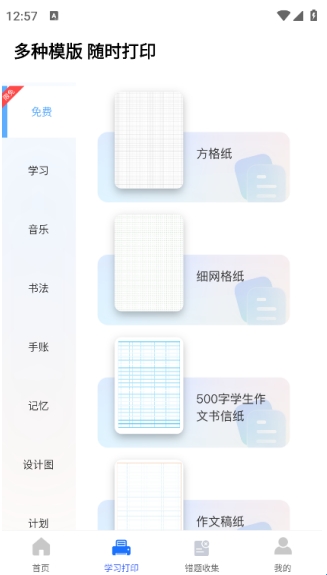 点击页面下方的‘学习打印’,即可看到多个实用模版,可以按需选择;