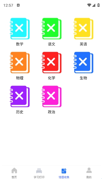 点击页面下方的‘错题收集’,即可看到不同学科的错题本。
