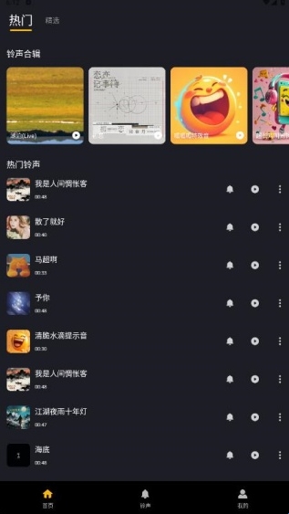 安装进入app首页,展示了热门铃声素材,还有合辑资源分享。