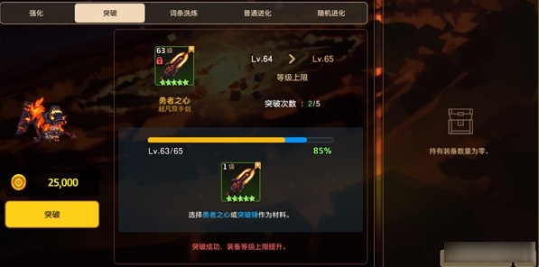 在角色满星之后,可以花费英雄水晶进行突破,突破能够解锁英雄的等级上限。