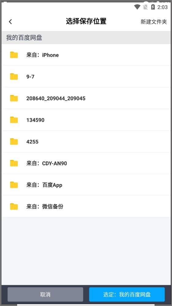 3、选择保存的位置,也可以点击右上角新建文件夹,最后点击选定我的百度网盘