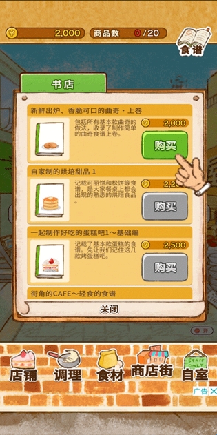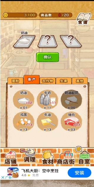 2、前期可以多做塔类的甜品快速渡过,圣诞树蛋糕也可以。中期商店购买冰箱,做冷冻塔渡过。后期做和果子一类渡过,或者其他高价格商品也可以。圣诞树蛋糕前中期都很有用建议解锁。