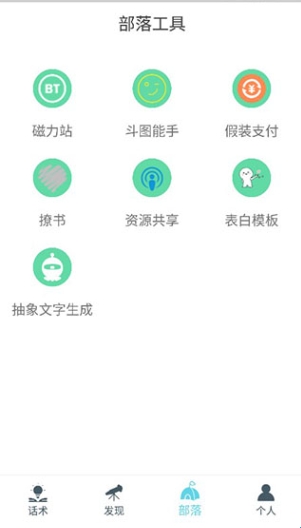 话术部落是一款专门和人聊天的软件。在这里汇集了一套专业的聊天话术,还有说话教学,让你的话更有逻辑、更有连贯性和更有情商,用户可以使用它用于各种场合,就不用担心聊天会尬场了。该软件还有丰富的聊天工具板块,其中有斗图功能、抽象文字生成功能和表白模板等等,语言匮乏的小伙伴,欢迎下载体验。