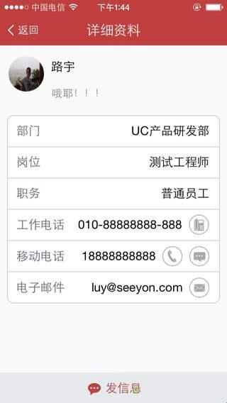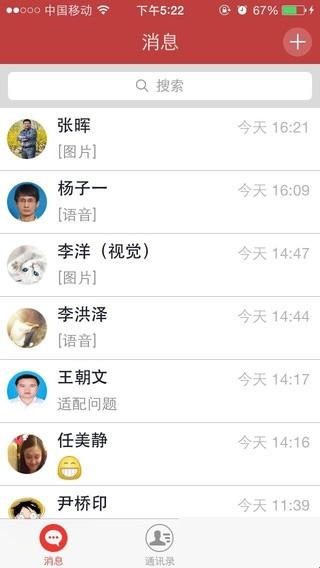 2、界面相当的简单清爽,只有内部通讯录跟聊天消息两个界面