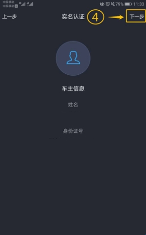 5、请车主用户审核显示的车主信息无误后请点击【下一步】