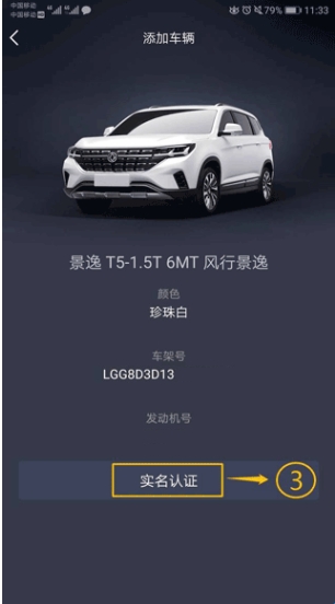 4、审核显示的车架号及发动机号无误后、点击【实名认证】