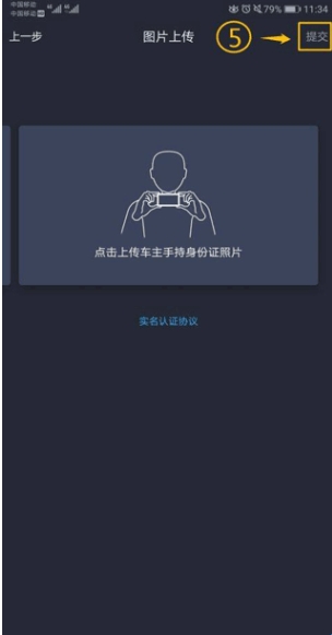 6、依次上传车主身份证国徽面、车主身份证人像面及车主手持身份证照片并点击【提交】按钮,完成实名认证申请