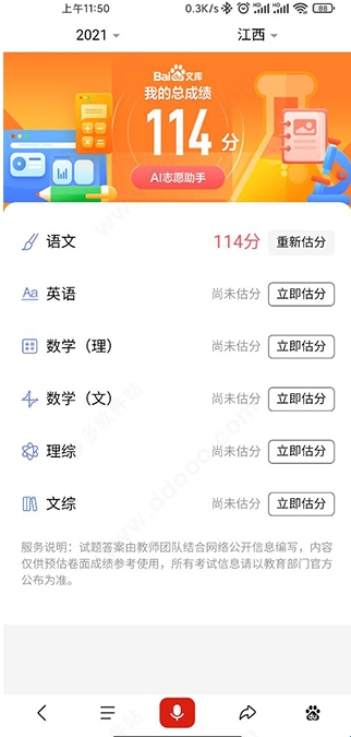 接着就可以看到高考估分系统啦;