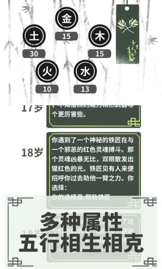 伏魔人偶转生模拟器,这是一款融合文字元素的修仙游戏,整个设计比较简约,玩法内容很丰富。你可以自由选择门派修炼,体验不同的人生;每一次的选择都将影响着你的命运,所以玩家需要注意哦!除此之外,你还可以与其他NPC角色互动,达到一定的亲密度后会触发特殊任务呢,喜欢的小伙伴们赶紧来本站下载体验一下吧!