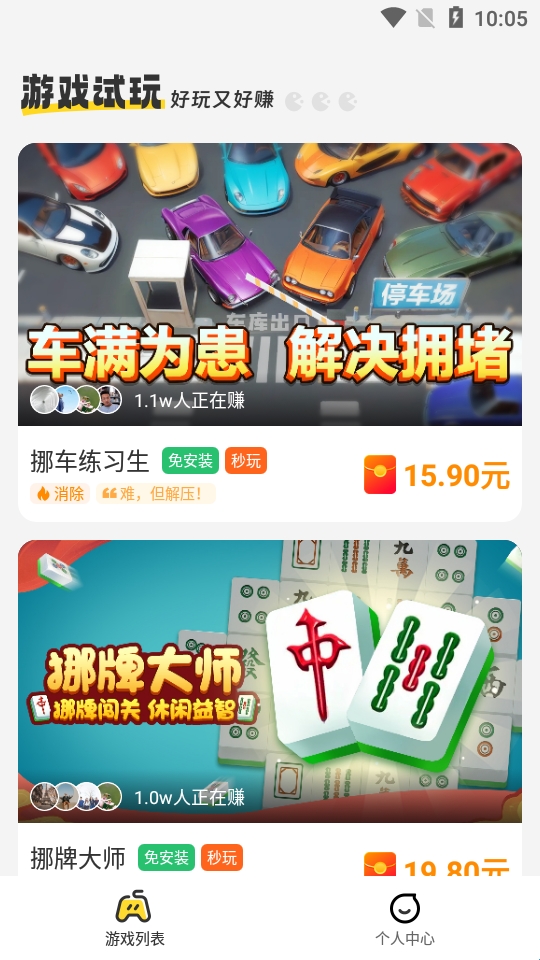 99试玩是一款十分有趣的游戏盒子软件,大家可以在此软件当中寻找自己喜爱的游戏进行试玩,具有角色扮演、冒险、动作、休闲益智、以及飞行射击等等,而且用户在享受游戏的同时还可以完成任务来获得丰富的现金奖励,支持提现到账哦,边玩边赚钱,喜欢的朋友抓紧来下载吧!