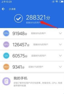 3、等待安兔兔跑分测试完之后,我们就可以看得到我们手机的跑分情况了。