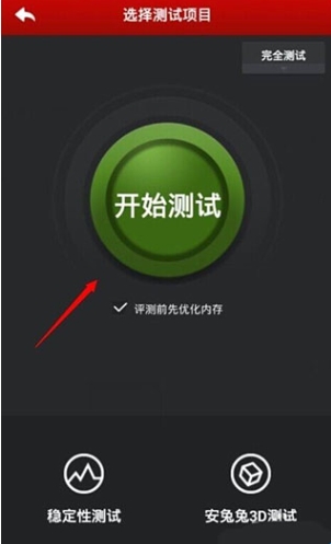 注:还有可以测试手机的稳定性,安兔兔专有的3D测试。或是者点右上角处完全测试根据需要选择吧!