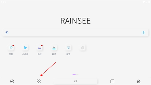 1、进入到rains浏览器软件后,点击下方的菜单按键;