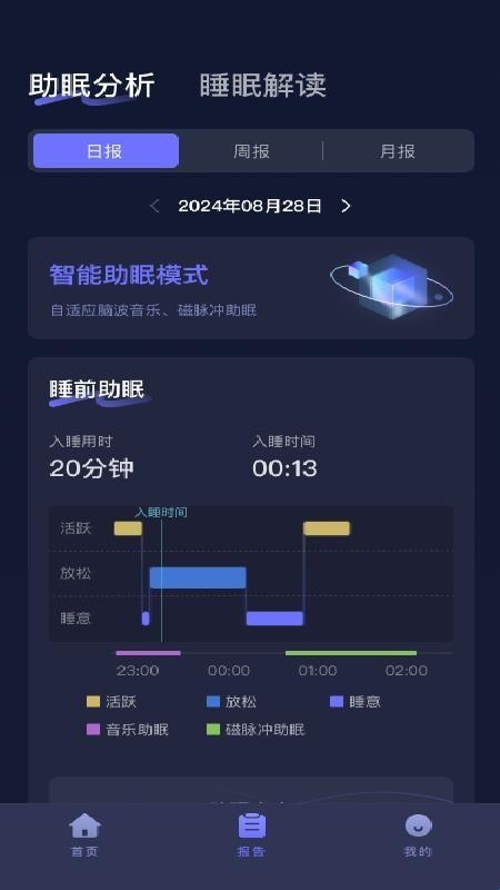 完成睡眠数据记录,可智能分析,帮助你知道助眠和睡眠信息更加方便直观。