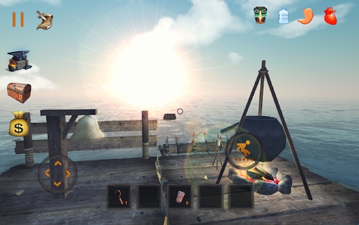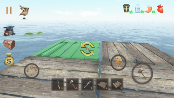 密切关注水上房屋的状况,不要让鲨鱼摧毁它。从零开始在水中建造一艘木筏,并向各个方向扩展它。木筏上的渔网、残骸收集器以及其他改进功能将帮助你装备它。
