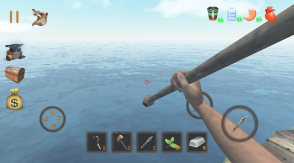 1、玩家在海上漂浮,只有一个木筏和一个钩子,你将用钩子钩住材料生存下去。